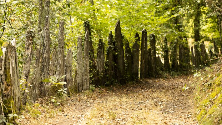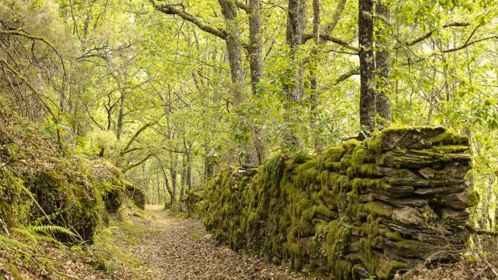 Na ruta cara o Muíño da Allonquiña pasamos por unha carballeira, seguindo un camiño de carros. En boa parte do percorrido o lado dereito deste é delimitado unha impoñente parede de groso musgo que cubre totalmente un muro de pedra que alterna con tramos formados por laxes verticais. Pola súa banda, o chan está cuberto por unha densa capa de follas de carballo. Todos estes elementos conforman un conxunto moi interesante ao que acompañan os sons do bosque.