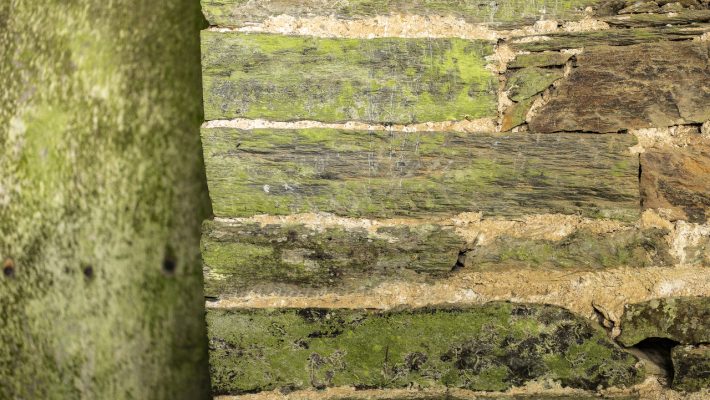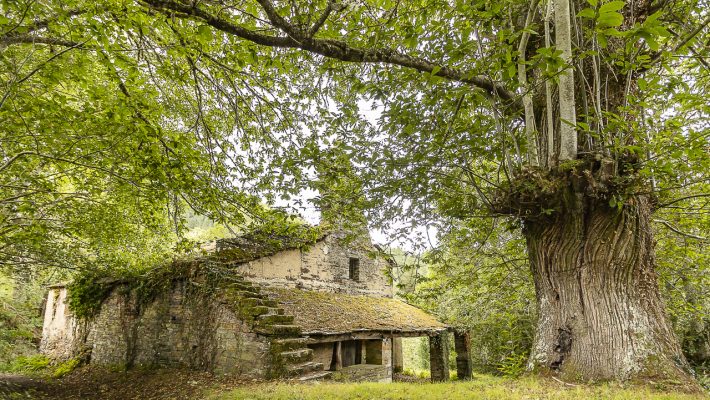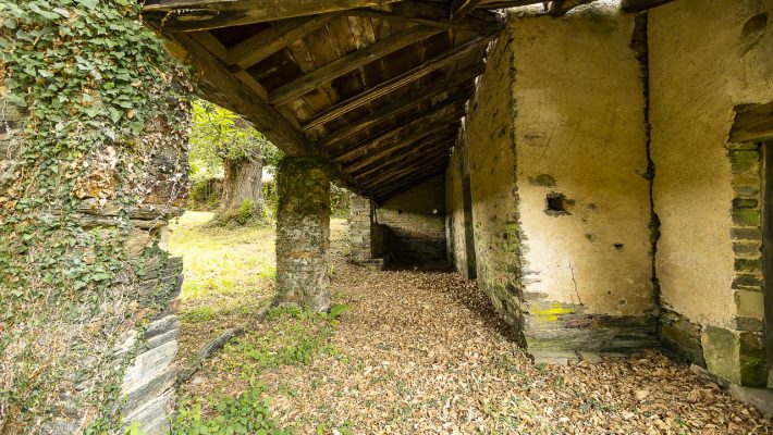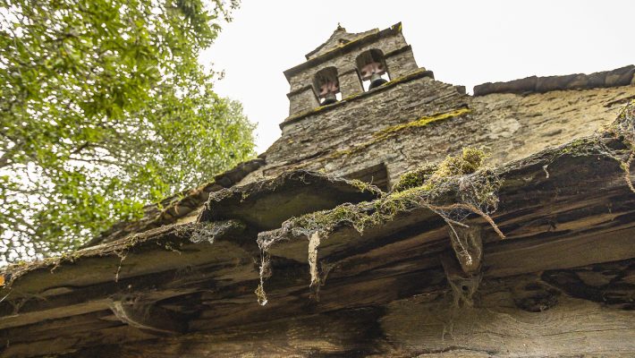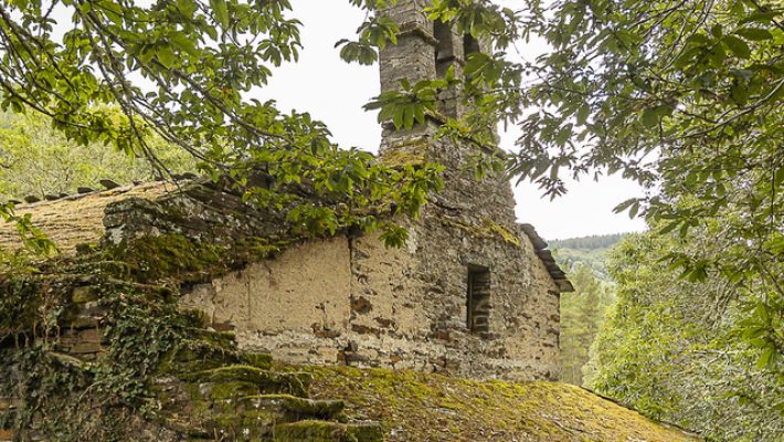 Construída no s. XVII, ten planta de cruz grega e unha espadana con dúas campás. Destacan especialmente o seu amplo pórtico de lousa, o resto da cuberta e as singulares escaleiras que conducen ao campanario pola fachada da igrexa, algo nada frecuente. Integrada nun mesto souto, a presenza do cemiterio próximo e a vexetación que cubre boa parte da súa superficie, xunto coas pegadas do paso do tempo e do abandono, outórganlle un carácter especial. Sen dúbida, poderemos atopar unha chea de micropaisaxes nesta contorna. Está integrada na Ruta dos Pintores e moi preto, nunha vivenda achegada, hai un hórreo de grandes dimensións que paga a pena observar.
