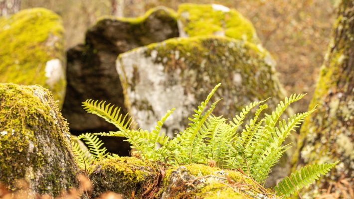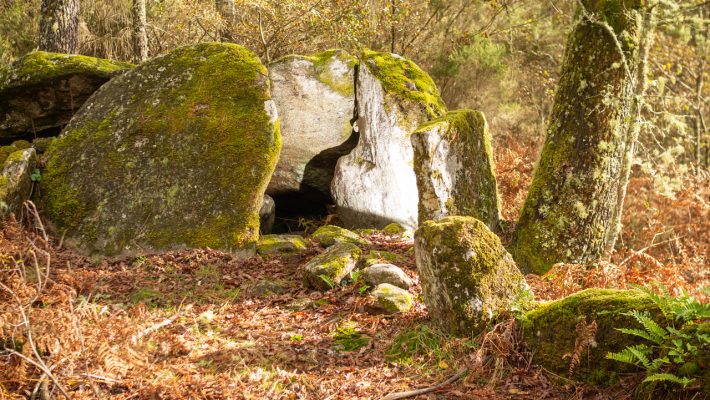 Una mámoa es un enterramiento prehistórico, del periodo Neolítico. Se trata de un túmulo de tierra en cuyo interior se encuentra una cámara funeraria formada con grandes piedras planas y conocida como dolmen o anta. Esta de Achas se encuentra muy cerca de A Cañiza, en medio de un bosque de robles y grandes helechos que invita a escuchar el sonido del viento entre sus hojas. Está excavada, bien señalizada y forma parte de la ruta de Petán, un sendero circular que recorre la zona de norte a sur.