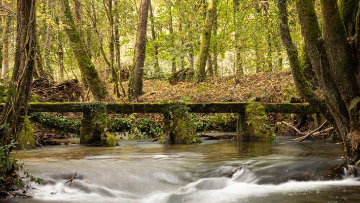 Sobre el río Deva y en la zona de Touzosas, Valeixe, encontramos este curioso paso formado por largas losas de granito, de unos 3 m de largo por poco más de 50 cm de ancho, colocadas en fila sobre pilares de piedra apoyados por otras grandes losas en el lado de entrada del agua, lo que nos da una idea de la fuerza que puede alcanzar el río en esta zona. es una zona muy húmeda y frondosa que merece la pena explorar, aunque es necesario tener cuidado de no resbalar.