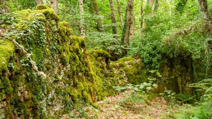 Sobre los restos de un pequeño asentamiento de la Edad del Hierro, encontramos una especie de laberinto formado por antiguos muros, fosos y caminos completamente cubiertos por gruesos musgos, grandes helechos y árboles centenarios. Todo ello forma un conjunto de gran interés en el que se pueden localizar innumerables micropaisajes. Merece la pena visitarlo en distintas épocas del año, al tratarse de un bosque formado esencialmente por robles y castaños.