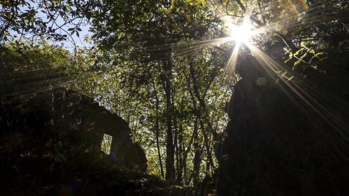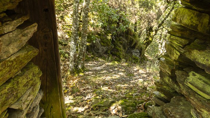 Un “cortín”, también llamado “cortino” o “albariza” en otras zonas de Galicia, Asturias y León, es una construcción circular formada por un muro alto a base de piedras del lugar, rematado por un alero de pizarra y con una única puerta. Su función era dar protección a las colmenas frente al ataque de osos. En este de Castañoso, situado en las inmediaciones del castro, solo se conserva una parte de los muros y el vano de la puerta. Semioculto por la vegetación, forma un conjunto muy atractivo y plagado de potenciales micropaisajes.