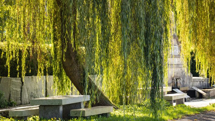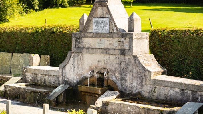 Construida en 1930, se trata de una fuente monumental, formada por un amplio frontón del que salen tres caños por los que se vierte el agua en una pila central. A ambos lados hay otras dos pilas de mayor tamaño y que hacían las veces de lavadero, como indican las cuatro grandes piedras que servían para enjabonar y frotar la ropa. La zona, amplia y con árboles, forma un agradable y bonito conjunto.