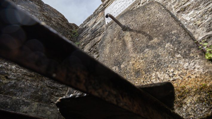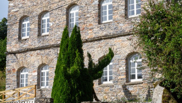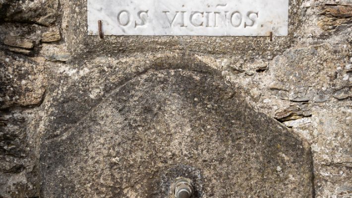 En el centro de este pueblo, en plena Vía de Künig, encontramos un interesante conjunto formado por la fuente, la antigua escuela (en proceso de transformación en albergue de peregrinos) y alguna otra edificación singular. Tanto la escuela como la fuente fueron obra de un benefactor local, como explica la placa de agradecimiento que los vecinos colocaron encima del manantial.