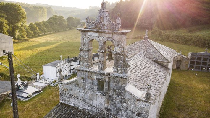 Según aparece inscrito en el dintel de la sacristía, esta iglesia se levantó en torno a 1764 gracias a la ayuda de don Diego de Villamarín. Destaca la alta espadaña con campanario y el pórtico de acceso. En su interior hay retablos y esculturas del S. XVIII, además de una de Santa Mariña, del S. XIV.