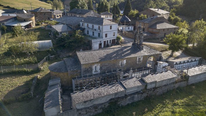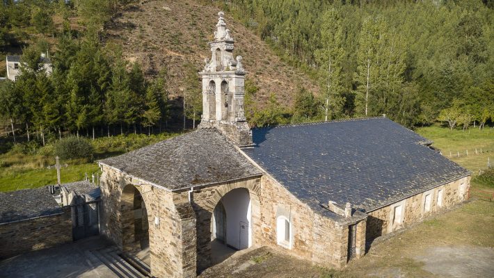 Aunque formó parte de un monasterio de la Orden del Císter, solo se conserva esta iglesia de origen románico. Tiene planta de cruz latina y destaca el amplio pórtico de pizarra, con cubierta a dos aguas. Muy cerca, en la parte alta del pueblo y en una placita, hay una pequeña capilla, posiblemente privada. Más alta que ancha, recuerda a un torreón y en su fachada principal tiene un pórtico de lajas de pizarra a tres aguas, al que se accede por una cancilla de hierro, a través de un muro totalmente cubierto de vegetación.