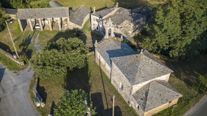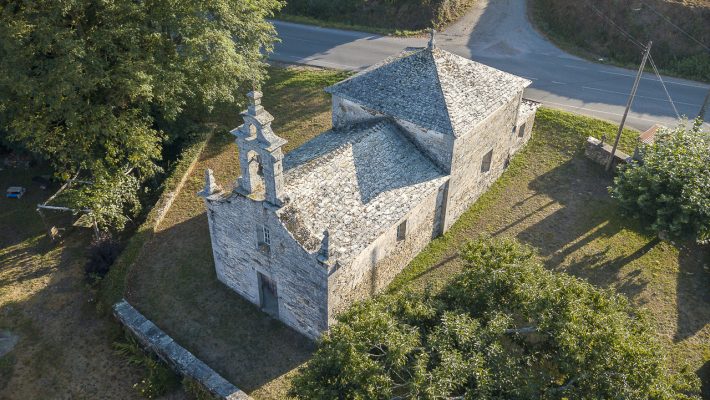 Se empezó a construir en el último cuarto del siglo XVIII, pero no se pudo finalizar hasta el primer tercio del siglo XIX. El retablo mayor, de estilo neoclásico, es obra de Francisco Somoza, vecino de la localidad asturiana de Abres, en Taramundi. Frente a la iglesia está la llamada Casa de Teixeiro, en cuya fachada destacan los dos escudos nobiliarios, una columna con una inscripción en latín y la fecha 1742.