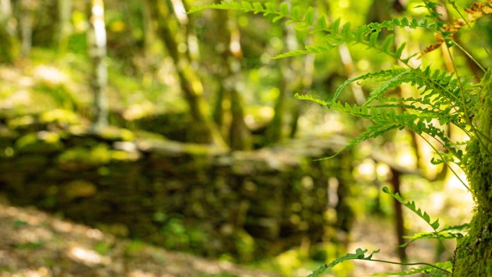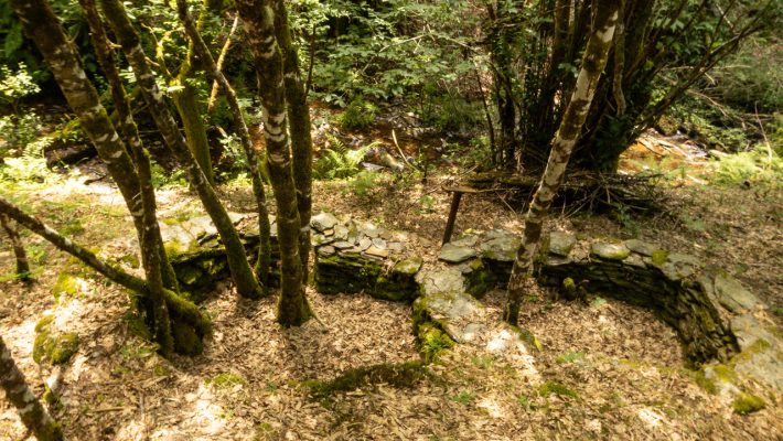 Las “ouriceiras” (en otras zonas de Ancares y Asturias se llaman “corrizas” o “corripas”) son unas construcciones circulares de algo más de un metro de altura, levantadas a base de piedras de la zona, en las que se guardaban durante un tiempo las castañas recién caídas de los árboles. Este fruto está recubierto de una gruesa protección con abundantes espinas que forman una especie de erizo. Al tenerlas un tiempo en estos espacios, se facilitaba el secado y su conservación, además de que permitía que el fruto se pudiera separar con más facilidad. En este tramo de la ruta PR-G 159, Sendeiro de Quintá – Donsal, promovido por la asociación local “Castaño y Nogal”, se pueden encontrar varios ejemplos de estas antiguas “ouriceiras” recubiertas de abundantes musgos y plantas que, junto al entorno singular, nos permiten descubrir múltiples micropaisajes.