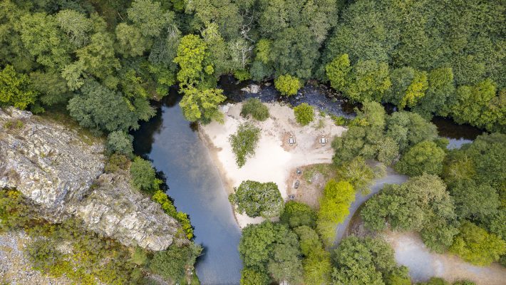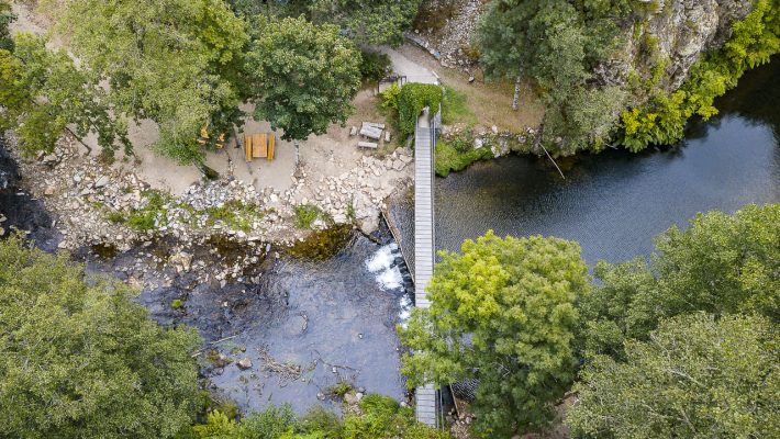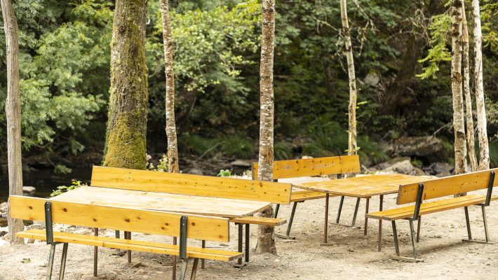 Cuenta con un arenal que forma una amplia zona de baño en el lado izquierdo del río de Lamas (que más adelante se une al Navia) y un buen número de mesas y bancos de piedra. Una pasarela colgante permite ir de una orilla a la otra y disfrutar de las vistas sobre el agua, así como de los servicios del bar instalado en el lado derecho. El bosque de galería y las formaciones rocosas próximas se suman a los atractivos de este lugar.