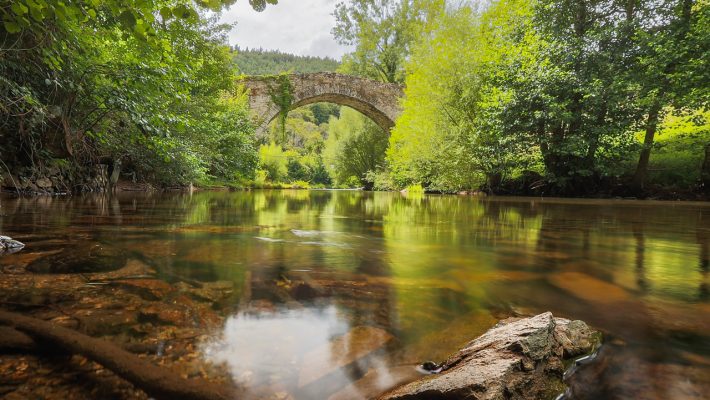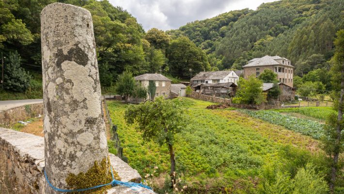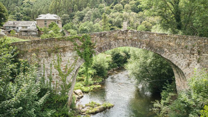 También se conoce como El Puente del Diablo, al cual la leyenda atribuye su construcción en una sola noche. Se dice que se apareció a una mujer embarazada que hacía una larga camiñata cada día para poder cruzar el río Navia y le prometió que construiría un puente a cambio de que esta le entregara el primer ser nacido en su casa. La suerte quiso que la primera en parir fuese una gata, de manera que la mujer saldó la deuda con el demonio dándole un gatito o gatín, de ahí su nombre. La historia nos dice que su origen es romano, ya que formaba parte de la Vía XIX que unía Braga con Astorga, pasando por Padrón. En perfecto estado, es una construcción armónica y de gran belleza que forma un agradable conjunto con otras construcciones próximas y con el bosque de ribera del Navia.